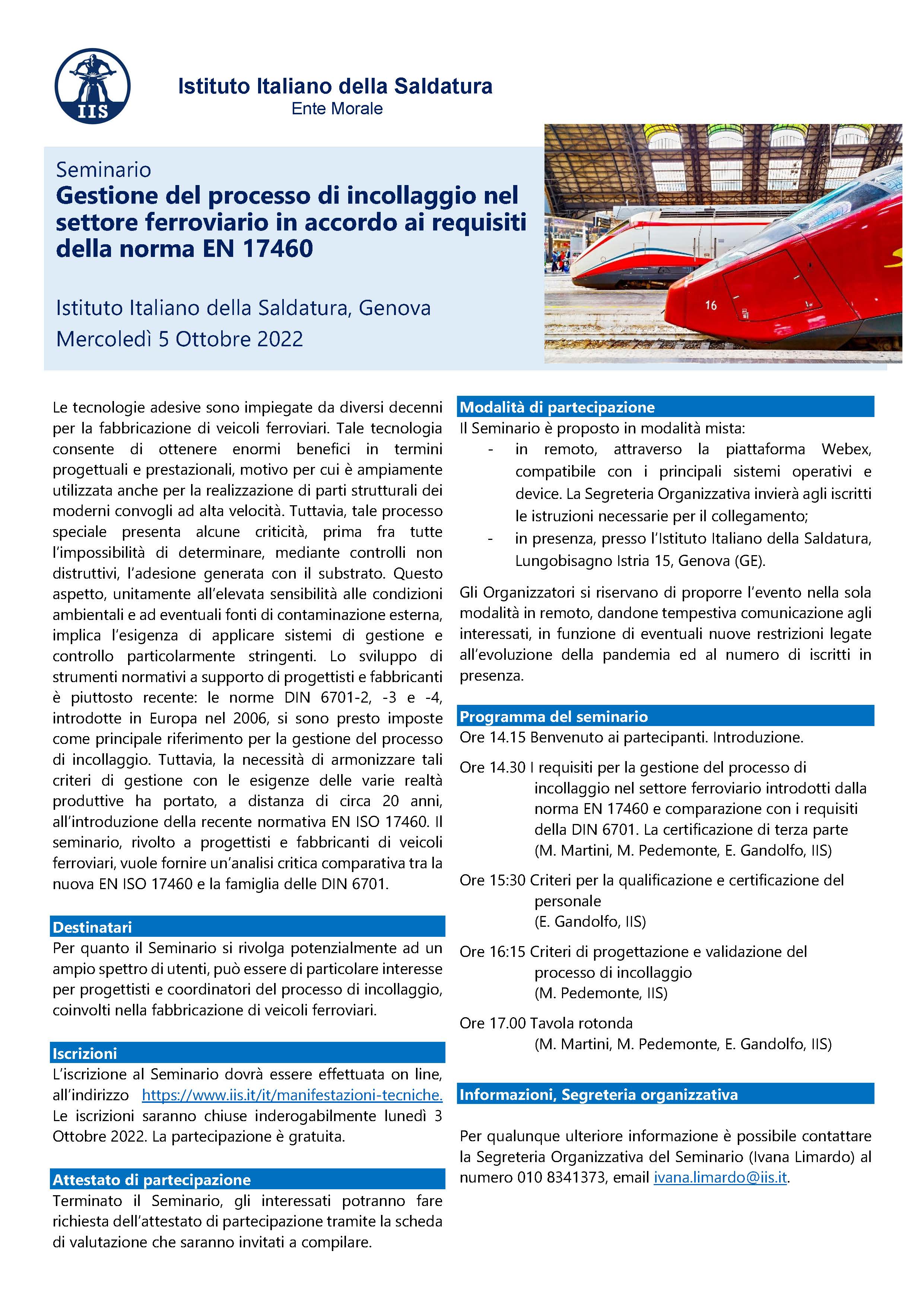 "Gestione del processo di incollaggio nel settore ferroviario in accordo ai requisiti della norma EN 17460"